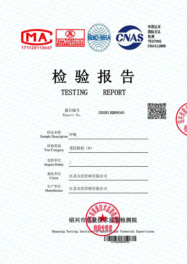 江蘇吉慶管材集團(tuán)有限公司創(chuàng)辦于2010年2月,是pp管,pp管材,pp管件,pp風(fēng)管,frpp管,frpp管材,pph管,pph管材,pph管件,pph風(fēng)管,pvdf管,pvdf管材,pp儲(chǔ)罐,pp板材的專業(yè)化生產(chǎn)企業(yè)。公司占地30余畝,擁有各類資產(chǎn)8000余萬(wàn)元,專業(yè)技術(shù)人員20余人,管材生產(chǎn)線10條,管件生產(chǎn)線11條,具備了10000余噸各類防腐塑料制品的年生產(chǎn)能力。公司通過了ISO9001-2000質(zhì)量體系認(rèn)證,同時(shí)被評(píng)為AAA信用單位,2018年公司被評(píng)為高新技術(shù)企業(yè),此后陸續(xù)取得安全生產(chǎn)管理證書等榮譽(yù)。公司位于水上花園城市----江蘇省揚(yáng)中市八橋鎮(zhèn)永福路18號(hào),交通便捷,可直接導(dǎo)航至公司園區(qū)內(nèi)。公司全體員工將以高度的敬業(yè)精神,嚴(yán)格的質(zhì)量控制理念和科學(xué)的管理方法,及時(shí)周到的服務(wù),竭力為我國(guó)塑料管道在各領(lǐng)域的推廣和應(yīng)用作出更大的貢獻(xiàn)!